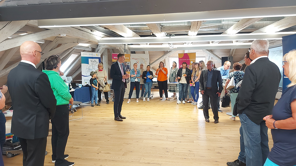 Unter dem Motto „DIGITALISIERUNG ENTDECKEN VERSTEHEN GESTALTEN“ wurde ein kostenfreies Angebot zusammengestellt, dass generationenübergreifend einige Highlights zu bieten hatte. Landrat Dr. Oliver Bär eröffnete den Informations- und Mitmachtag in den Räumen der VHS Hofer Land. Für Besucher*innen bot sich auf jeder Etage ein besonderes Erlebnis. Die Zusammenarbeit verschiedener lokaler Institutionen war die Grundlage für den Erfolg der Veranstaltung. Der 1. VHS Smartphone-Stammtisch für ältere Personen fand am Digitaltag 2023 statt. In der Folge konnten in der Stadt und dem Landkreis 10 weitere Termine mit 88 Teilnehmenden durchgeführt werden. Dieses Angebot wird auch 2024 kostenfrei umgesetzt. Beteiligt waren folgende Institutionen: