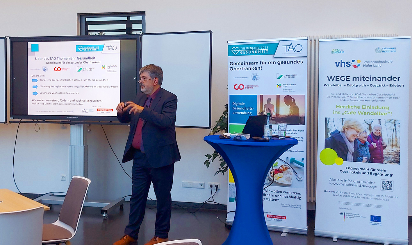 Prof. Dr. Dietmar Wolff nahm sich ausgiebig Zeit, um den Anwesenden in der VHS und den online zugeschalteten Interessierten alle Fragen zu beantworten.